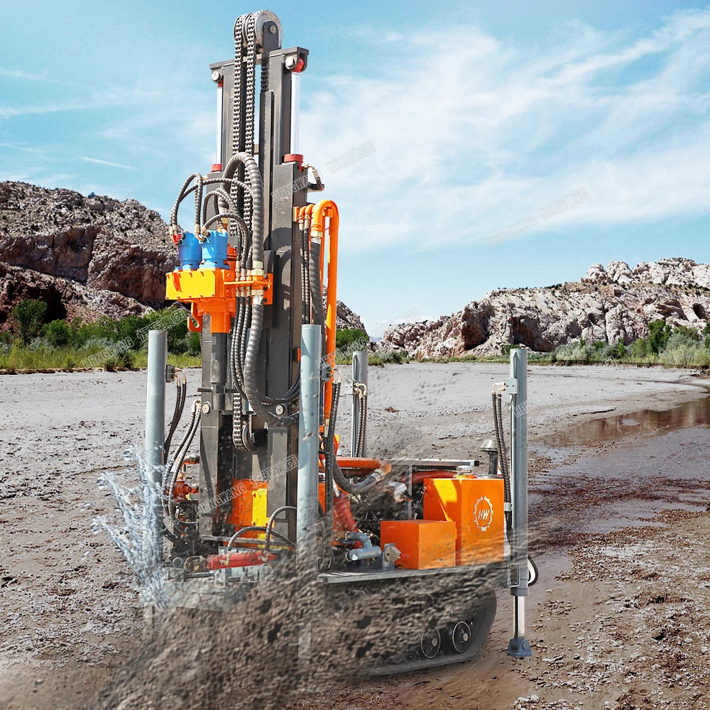 air water well drilling rig machine is rubber crawler . hydraulic pump and valve both use import brand .