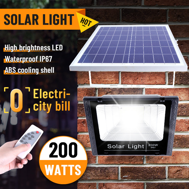 Illuminate your outdoor space with the durable and convenient 200W Hot Sales Solar Lights. Featuring a complete set with a remote for easy control, these waterproof lights provide powerful and energy-efficient lighting. Perfect for any outdoor setting, enhance the ambiance and security of your home with these premium solar floodlights.