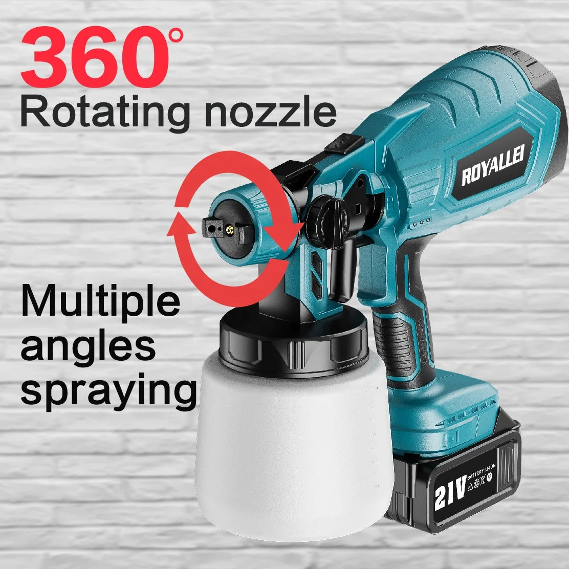 Multi functional spraying is widely used for spraying paint, latex paint, coatings, formaldehyde treatment, home guardrails, floor furniture, walls, vehicles and other surfaces.