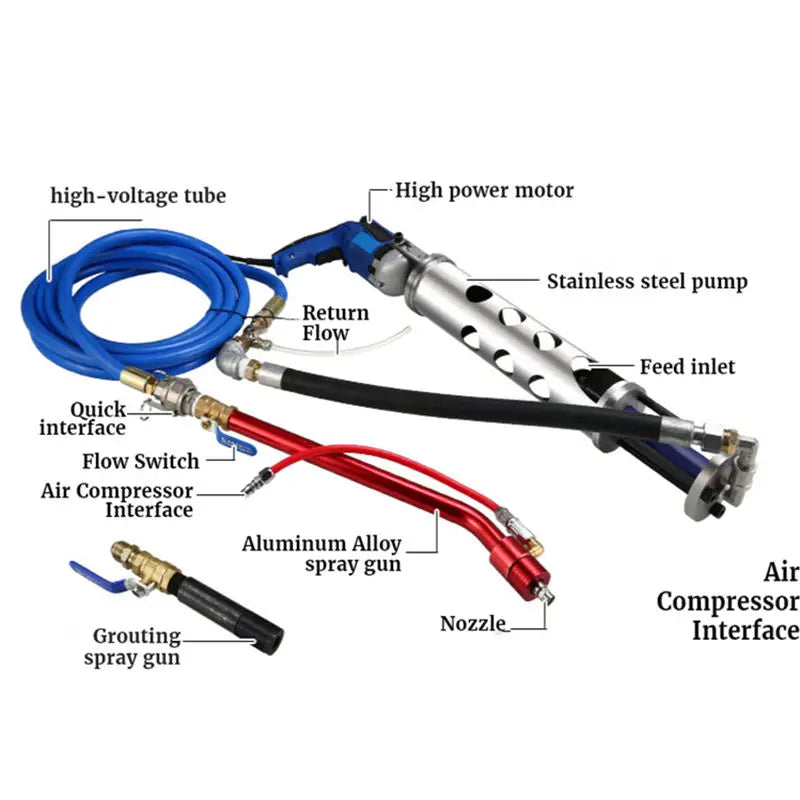 Note:Use with 1.1-3KW air compressor(no need air compresspr for grouting)