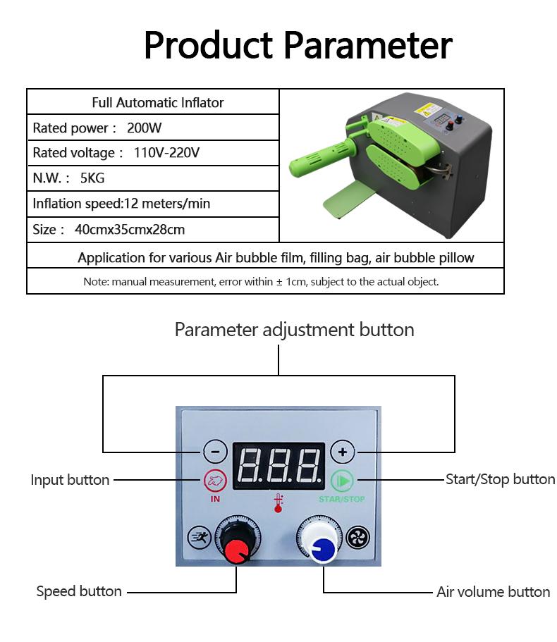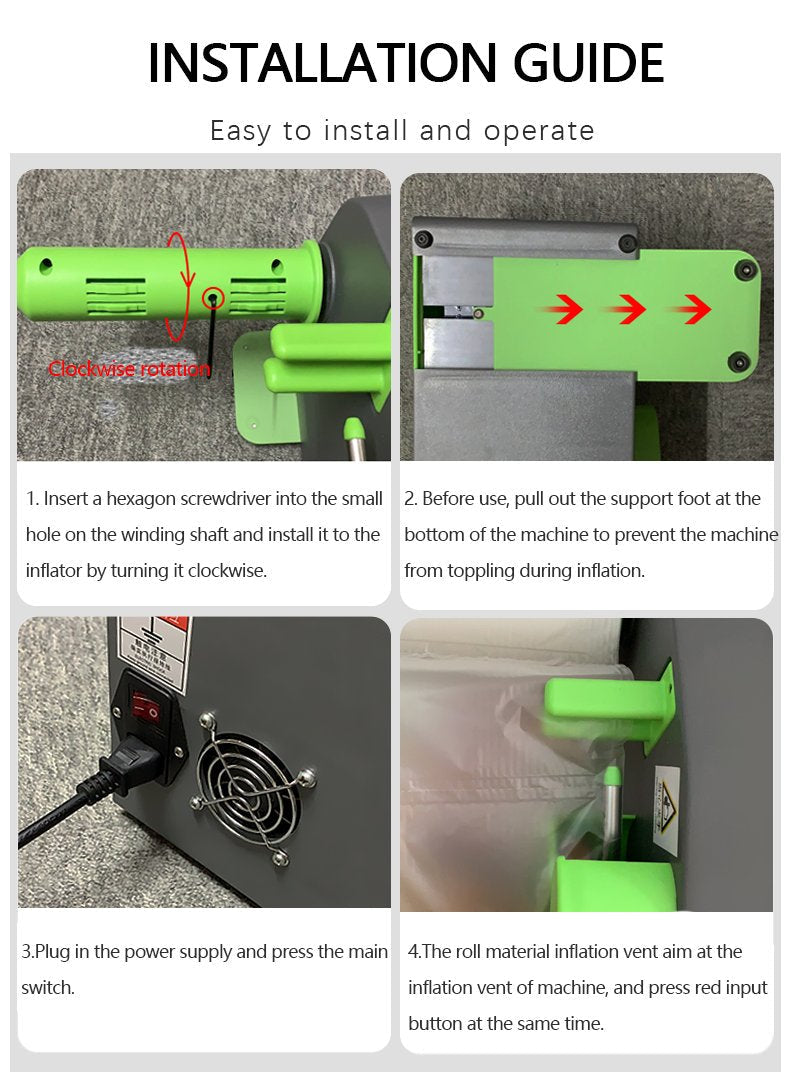 The Automatic inflation machine can use for inflate air pillow film, air bubble film ,air cushion four film and so on |