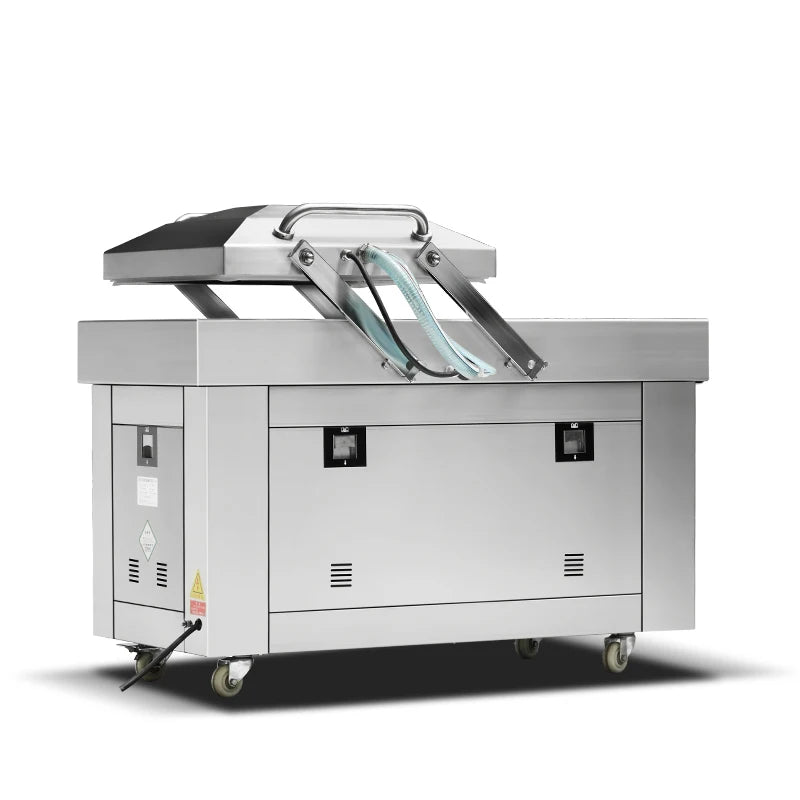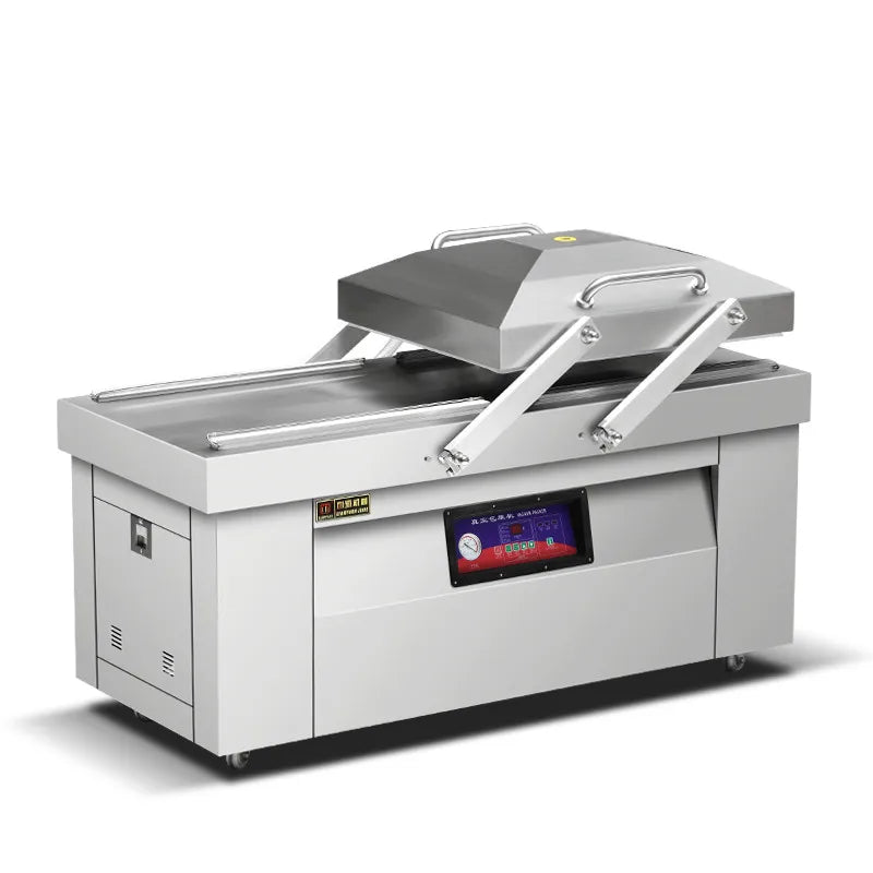 DZ series double chambers vacuum (aeration) packaging machine, As long as you press the vacuum case's lid, the machine will automatically complete the orderly assumed processes of vacuum extraction or aerate the orderly assumed processes of vacuum extraction or aerate the inner gas, sealing, printing, cooling and aeration. The packed products can be prevented from oxidation,going mould, insects or getting damp, thus can be kept fresh in a prolonged storage period. we can Make machine base on your requirement.