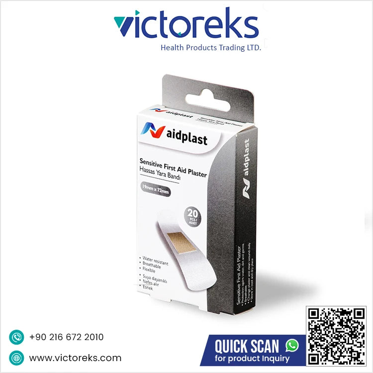 - Victoreks has been providing service to its customers in the production of products branded with its registered trademark AIDPLAST as well as private label products with its expert staff. The products produced by Victoreks include all kinds of Surgical Tapes, Sterile Wound Dressings and Eye Pads, First Aid Plasters, Capsicum Plasters, Menthol Plasters, Elastic Bandages, Compression Bandages and Gauze Bandages. Victoreks operates in its 5800 m2 closed area that includes production, storage, laboratory, and administrative departments complying with international standards. It has a high level of hygiene, occupational health and safety and sustainable production policy. With its technological infrastructure and high production capacity, it is among the most powerful producers in Turkey in its area of activity.