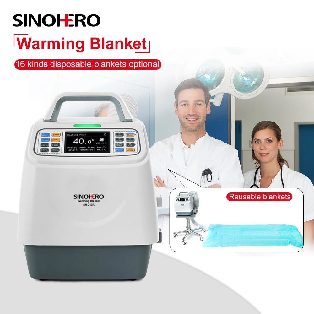 Warming System utilizes the convection of air to transmit the hot air generated by the main unit to the disposable blanket through the pipeline, so that the heat energy is evenly distributed and transmitted to the patient's body surface covered by the blanket to achieve the effect of heat preservation or heating for prevention and treatment of hypothermia in patients. Application:Operation Room, ICU and other wards