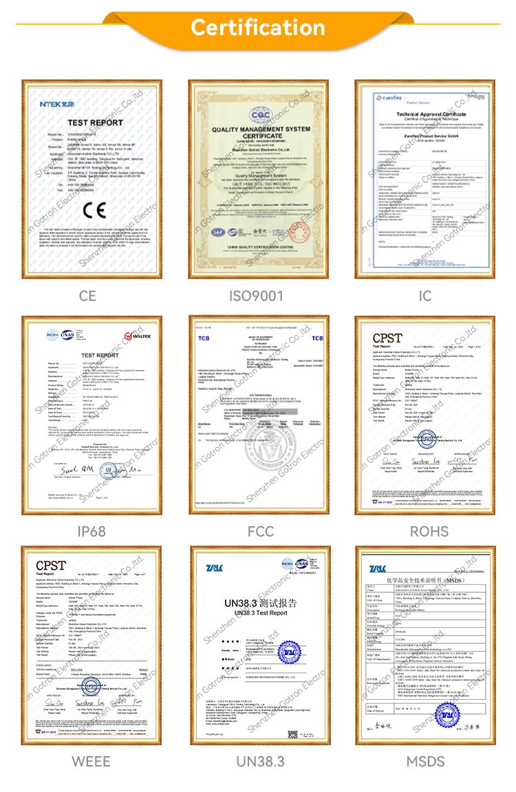CE, FCC, IC, WEEE, ROHS.TAC, UN38.3, MSDS, IEC62133 |