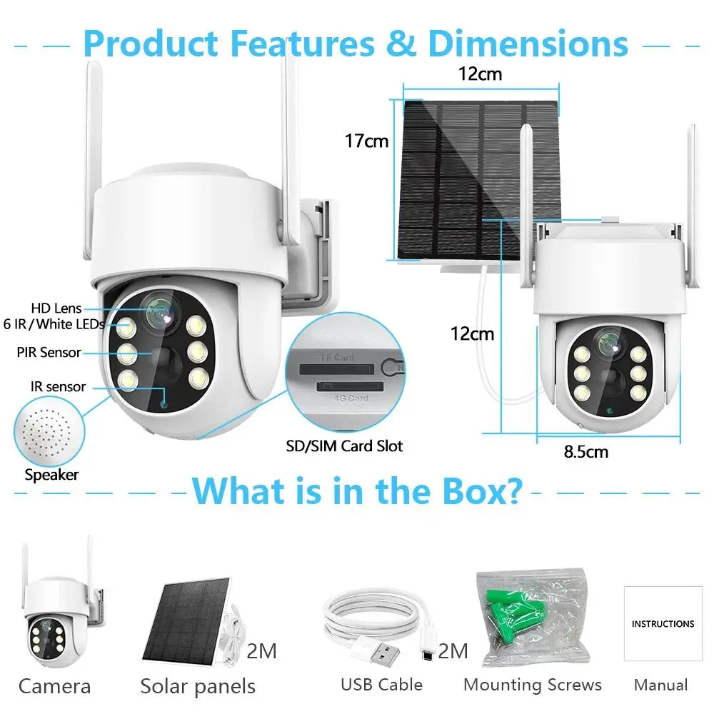 Support PIR human body induction; Support APP remote wake-up; Support day and night conversion; DC5V power supply, support solar power battery life (requires an external solar power board); Support WIFI network connection; Support 2D/3D noise reduction, digital wide dynamic; Advanced H.265X video compression technology, ultra-low bit rate, high-definition picture quality; Lightning protection, in line with national standard GB/T17626.5, international standard IEC61000-4-5; Support mobile phone monitoring (iOS, android); Support multiple cloud technologies, realize network penetration, push alarm information to mobile phones and other functions; |