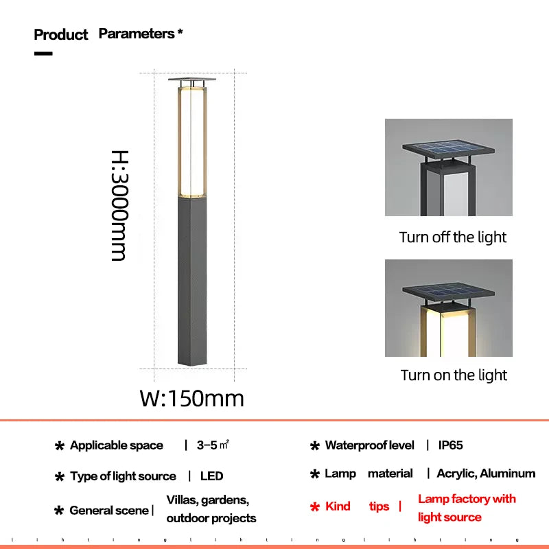 Landscape Outdoor Lawn lamp waterproof IP65 driveway Yard lighting round pole street post top Light Led Solar Garden Light