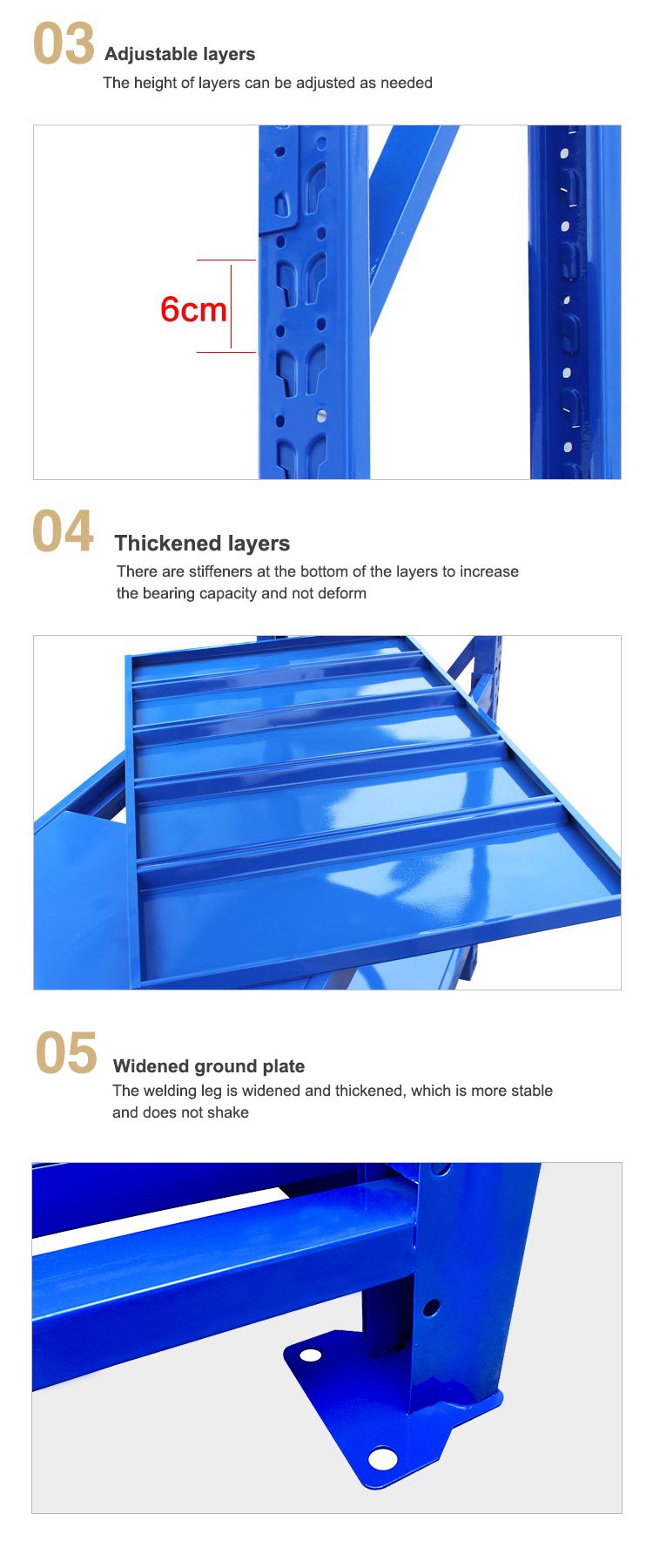 Our extra large, industrial-strength, heavy-duty, eco-friendly, adjustable Warehousing Heavy Duty Shelving estanterias industriales para almacen stackable racks will hold up to 200kg/440 pounds on each shelf and the shelves can be adjusted! They features ventilated shelves to keep your items dry and odor-free. Use them in your garages, basements, study rooms, warehouses, kitchens, living rooms, pantries, offices, laundry rooms, utility rooms or commercial spaces to maximize your storage space. The interconnecting capability allows you to connect multiple units for added storage space. It is quick and easy to set-up with no nuts and bolts required for assembly. The durable carbon steel construction will not rust, chip or peel.There are also center support braces that keeps the shelves from sagging. Besides,the four levels have diagonal support beams for extra sturdiness.And there are more to find out with our Warehousing Heavy Duty Shelving estanterias industriales para almacen stackable racks.