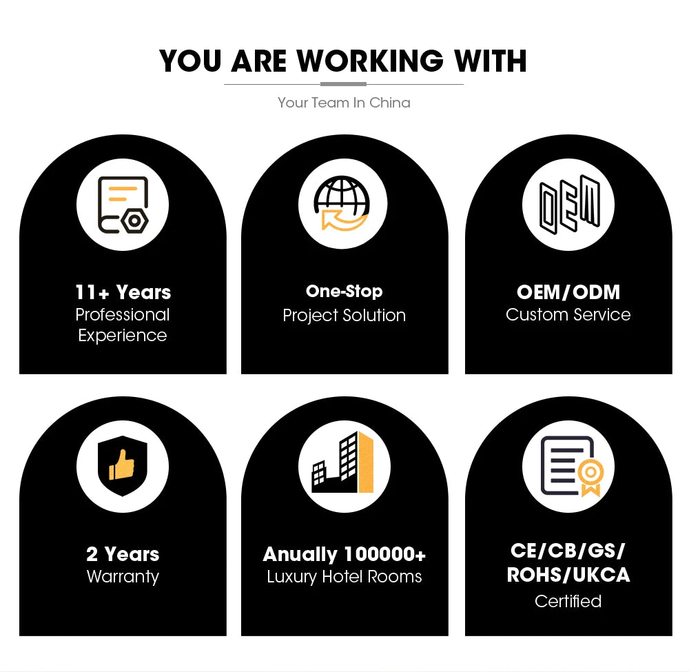 1. 10+ Experience In The Production Of Hotel Supplies,Factory Direct Price,On Time Delivery. 2. Respone Each Case Promptly And Best Services. 3. Credibility And Fairness For Each Client. 4. Enough Experiences For Using Different Material To Control Cost. 5. Have Special And Experienced Guys To Control Quality During Mass Production. 6. Our Products Have CE CB UKCA RoHS Certification And Also Export All Over The Word. 7. GUEST GUESS Products Specially Designed For Sustainable Hospitality Use;